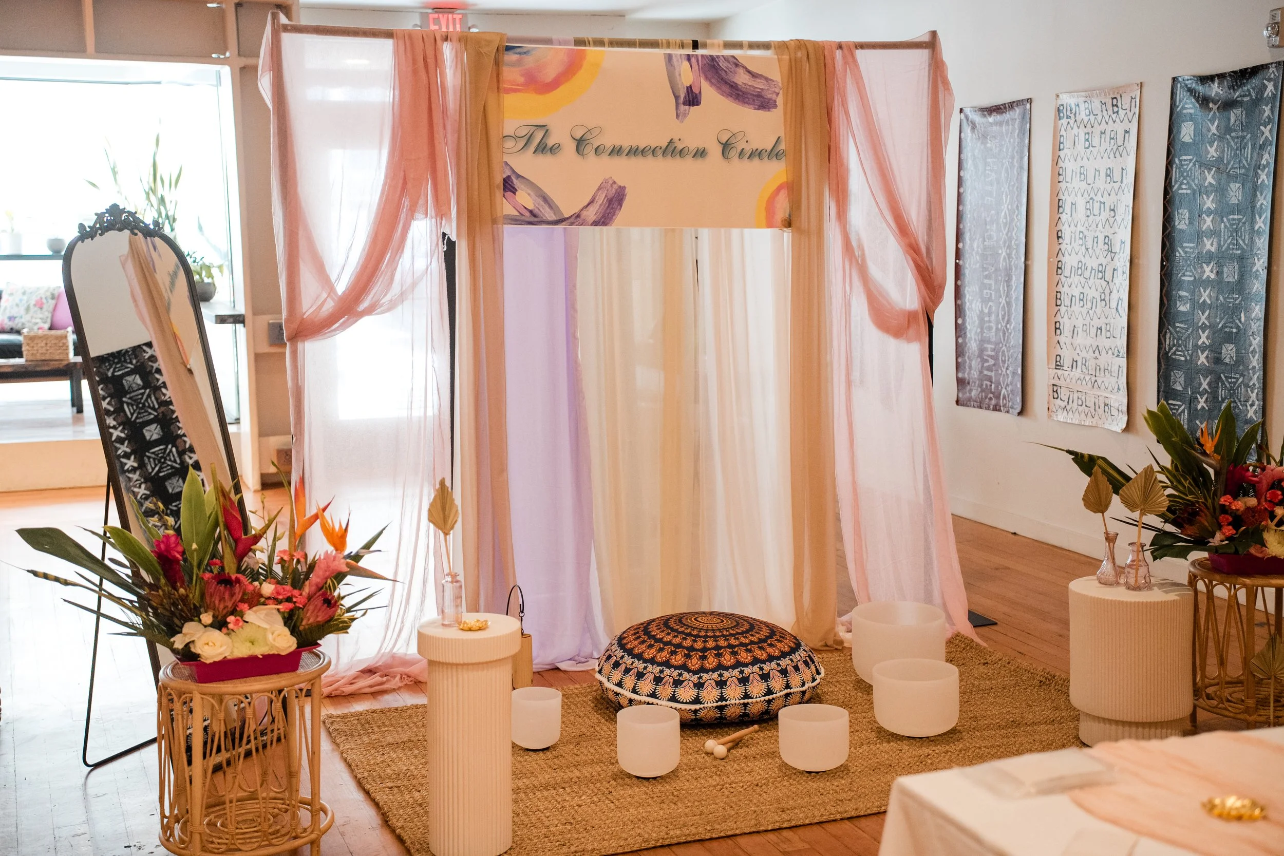 A healing-through-art event co-hosted with a friend to give back to her nonprofit. Guests enjoyed a sound bath, crafted letters to themselves, explored interactive wellness booths, and practiced tapping and self-care, all while building community and supporting a greater cause.